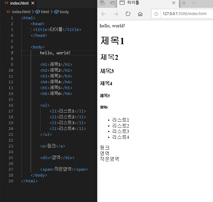- body 영역에서 사용하는 엘리먼트를 많이 알아두어야 html을 잘 사용할 수 있다.