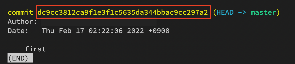 git log을 치면 해시값을 찾을 수 있다