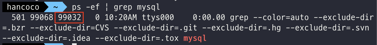 -> 한마디로 지금 실행되는 것들중에서 mysql인거 찾아서 죄다 보여줘.