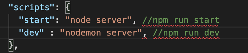 node로 된 명령어를 쓸건데, server.js파일을 실행할거란 명령문.