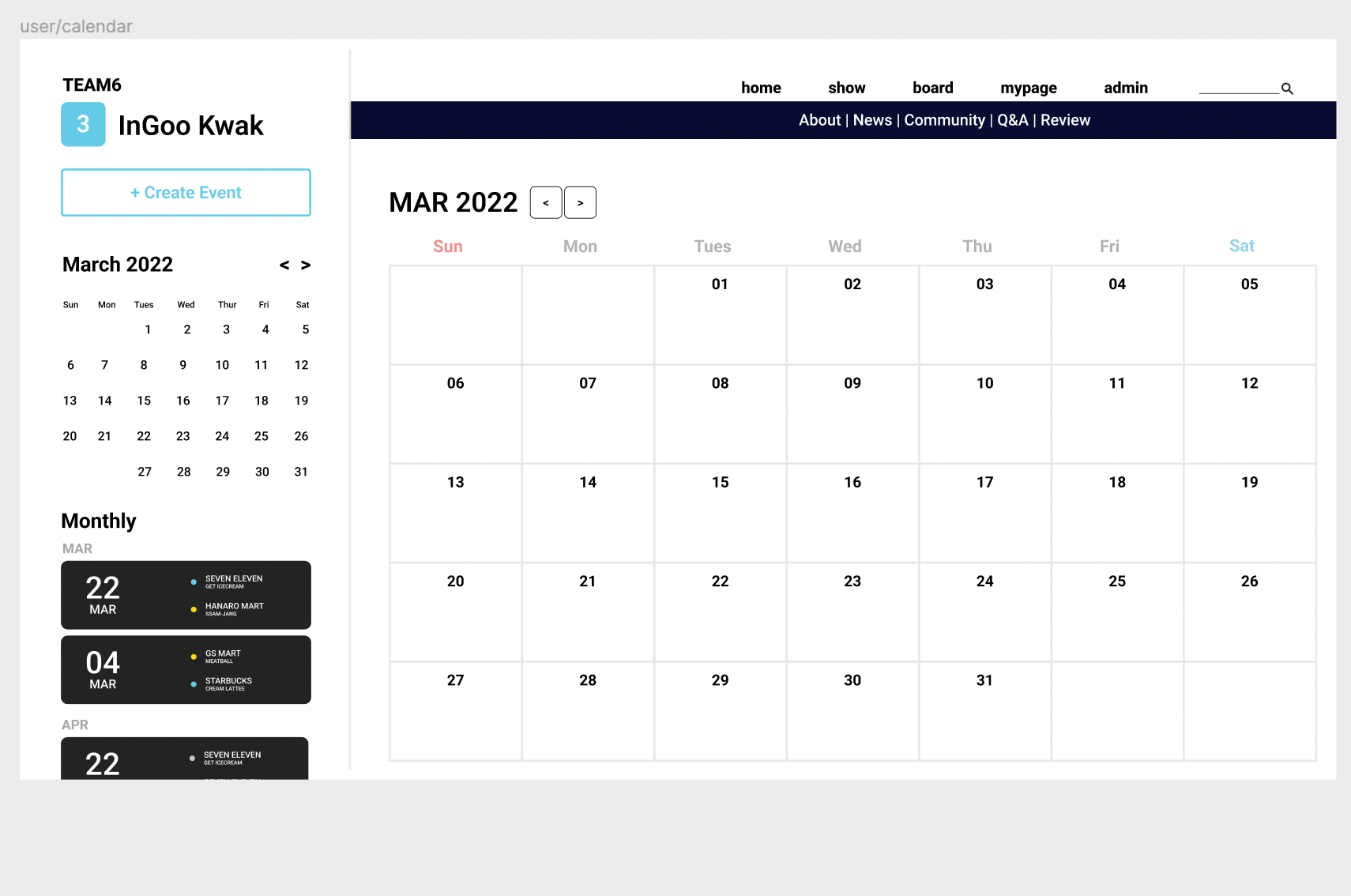 | [220323] 연극 예매사이트 팀플 기록) 5. 스키마 수정, 캘린더 프론트 디자인 80% 완성 (0) | 2022.03.24 |