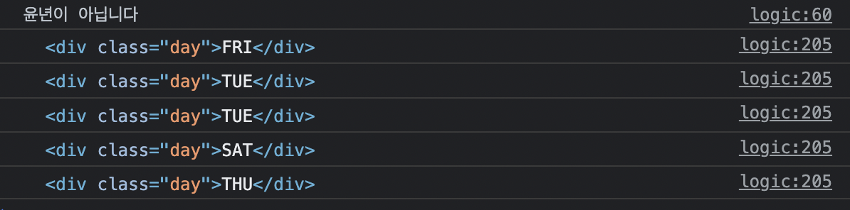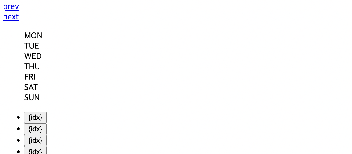 해당하는 월을 넣으면 그 달의 월/일/요일이란 객체를 담은 날쨔 리스트 완성.