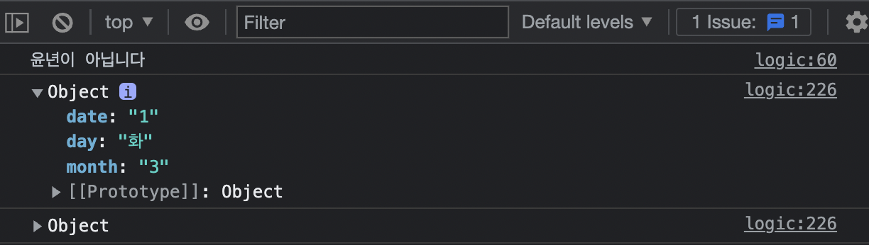 5) 나는 이제 좌표를 아니까, 지난달이 2월 28일 목요일에 끝났다면 내 달력에도 result[1][27] ={"월":"2", "일":"28", "요일":"목",}이 있을것이다. 즉, 달력의 어느곳을 클릭해도 쉽게 무슨 날짜를 클릭했는지 정보값을 불러올 수 있다.