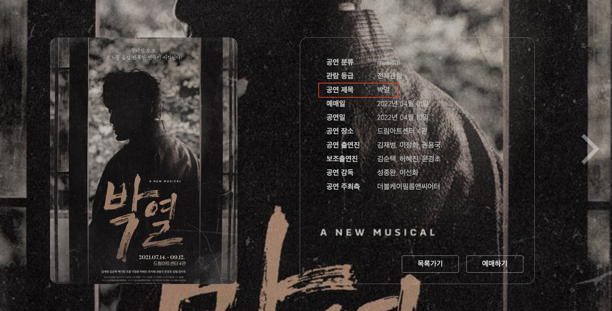 공연 제목을 읽고 일치하는 이미지를 배경과 메인이미지 박스에 넣도록.