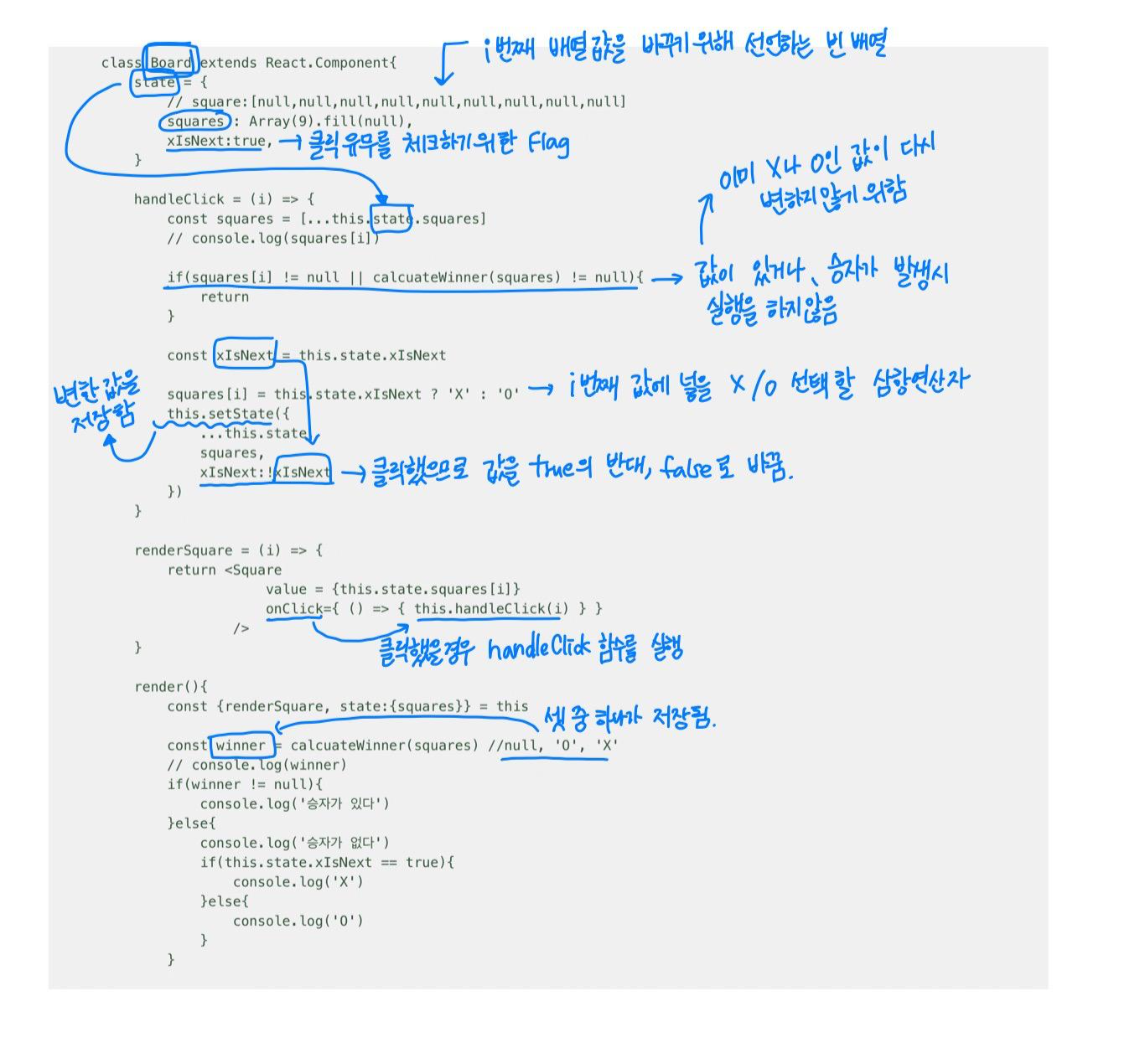 const winner = calcuateWinner(squares) //null, 'O', 'X'