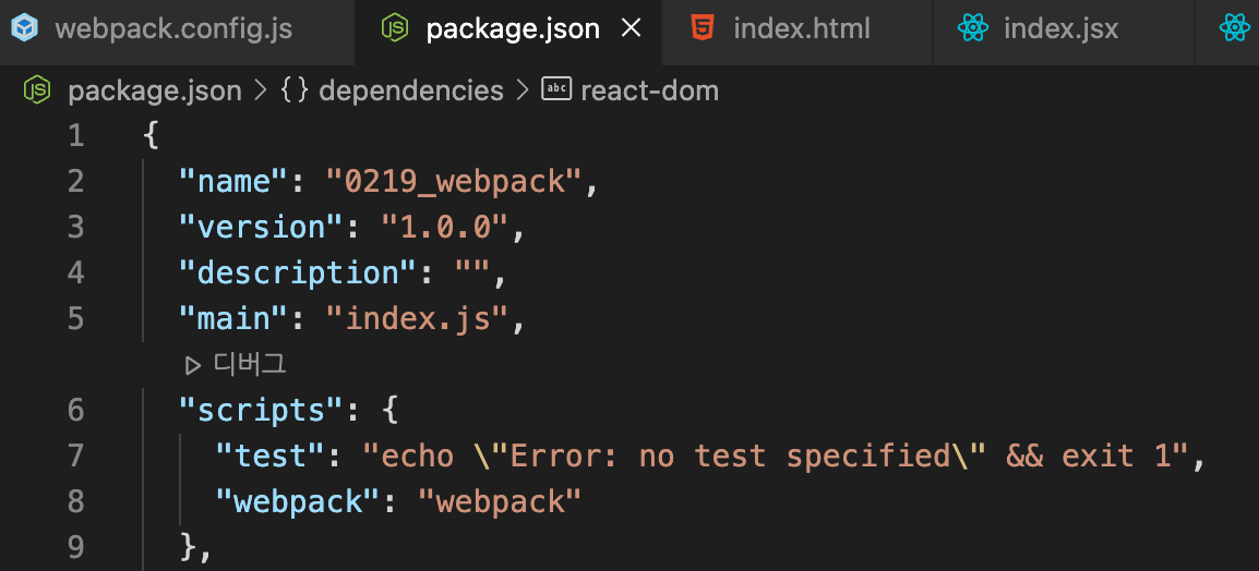 package.json 파일에 "webpack":"webpack"를 적어주면 터미널에서 이렇게 쳐도 실행이 됨.