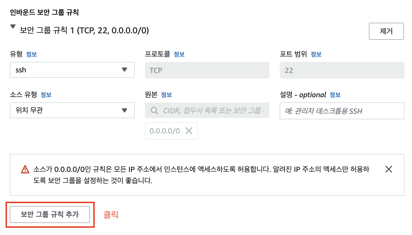 보안그룹 인바운드 수정을 해보라는 글을 봄 ( https://realsalmon.tistory.com/3 )