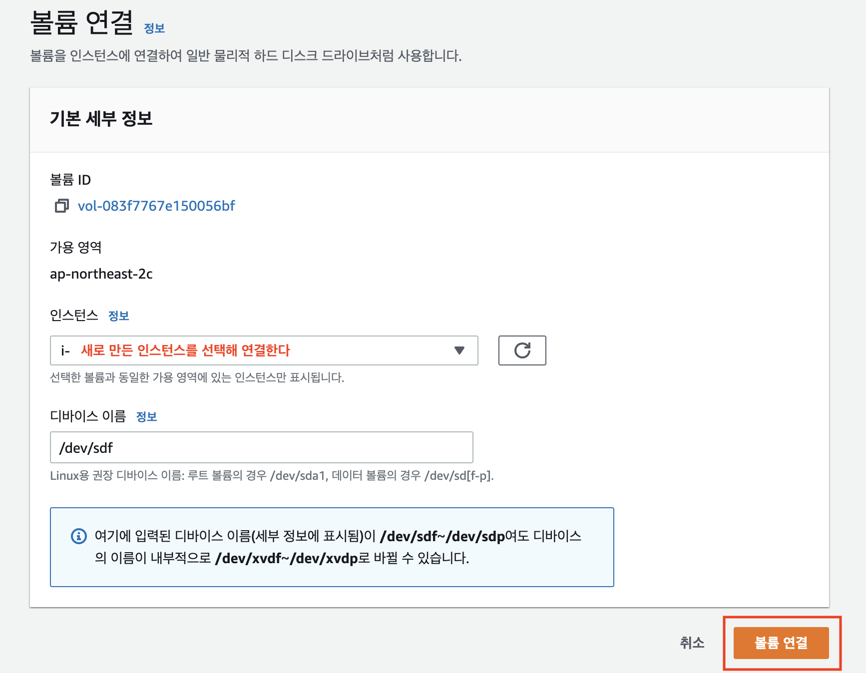 시도 3) 새 인스턴스 생성 후 볼륨 연결하기