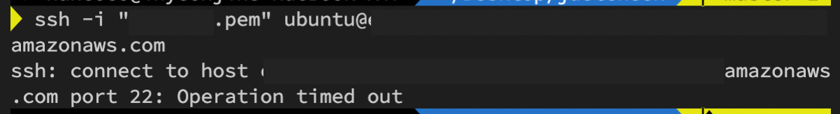 나는 이 상태에서 한참 멈춰있다가 Operation timed out이라고 뜸.