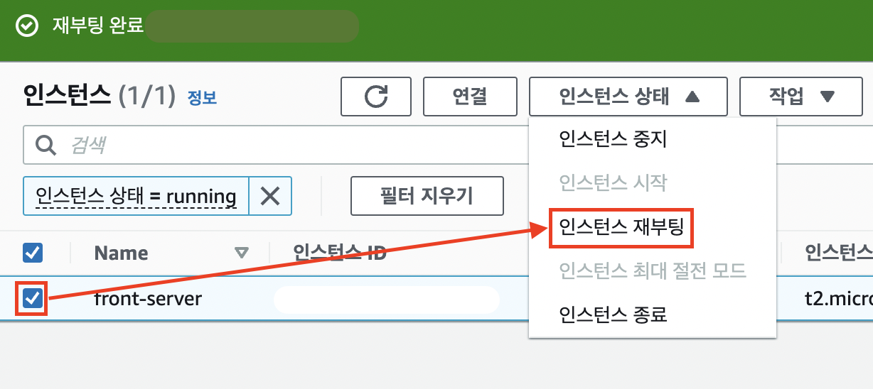 EC2를 재부팅해보라는 글을 봄 ( https://suyeoniii.tistory.com/51 )