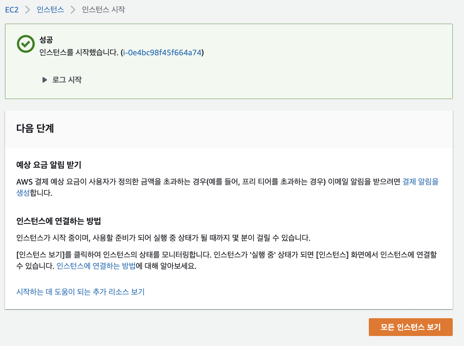 9) 인스턴스 생성 완료