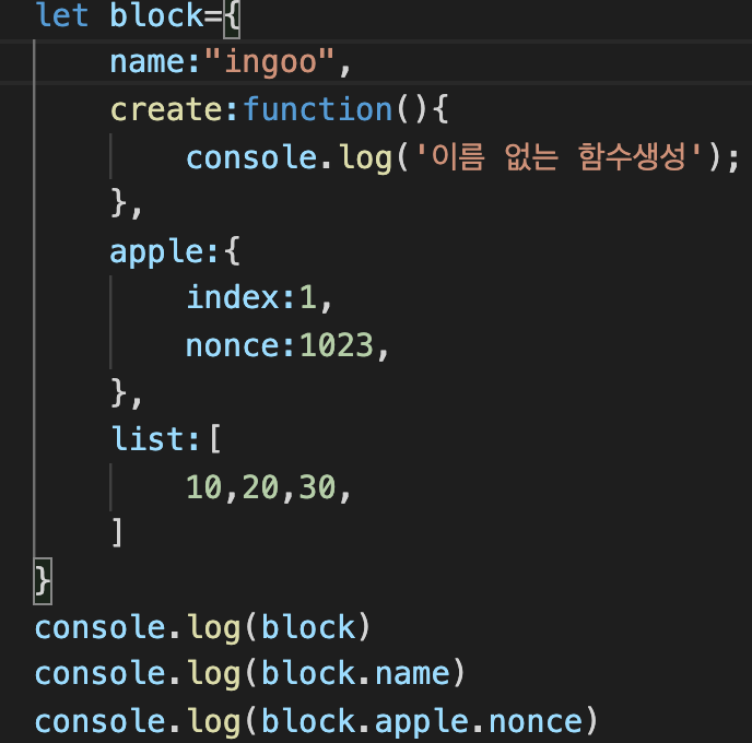 출력할때는 block.apple.nonce --> nonce는 속성이므로 () 붙지 않음. 왜? 함수가 아니니까.