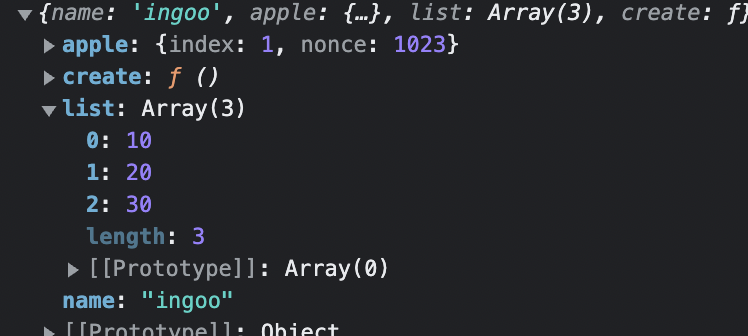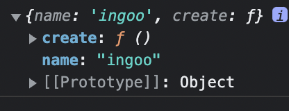 | 주소 : name / 데이터 : ingoo | 주소 : create / 데이터 : 함수(function) |