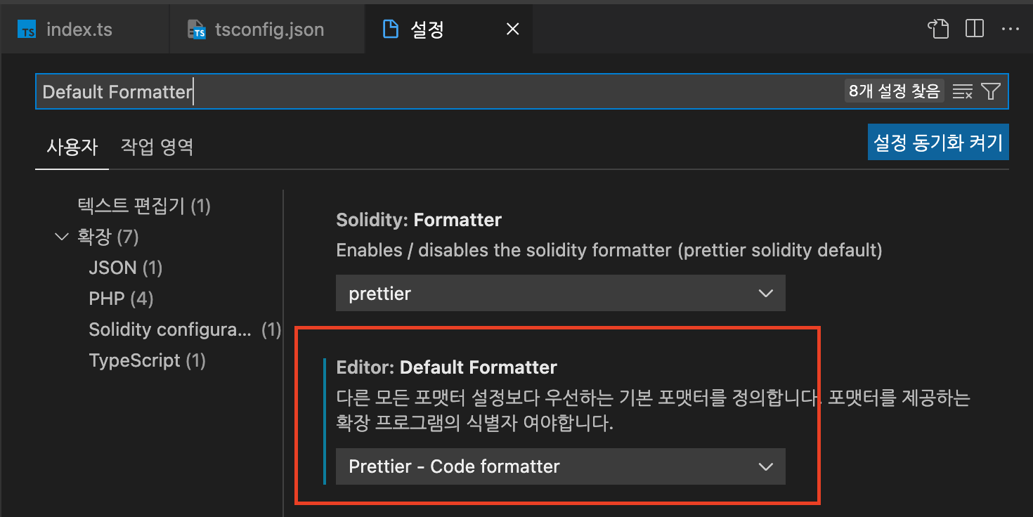 설정을 바꿔준 후에 비쥬얼 코드를 종료하고 다시 실행하면 적용된다.