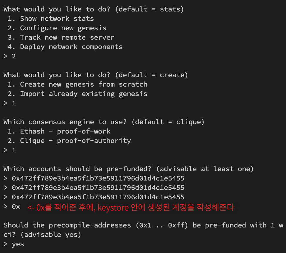 - allow-insecure-unlock : 보안상 계정은 디폴트로 lock되어 있는데 혼자서 테스트하는 서버니까 unlock