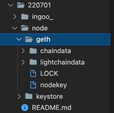 node 파일 안에 keystore파일과 계정이 담긴 파일이 생성된걸 볼 수 있다.