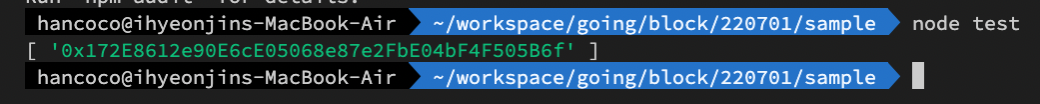 web3를 설치한 후에 포트 9000번에 접속하고, 만들어진 계정을 가져와 출력하는 코드를 작성했다.