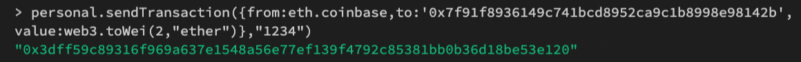 코인베이스에서 특정 계정에게 2 eth를 보내는 트랜젝션을 생성하는 코드를 만들었다.