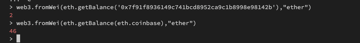 하지만 2 eth를 받아야할 계정의 잔액을 살펴보면 여전히 0이다.