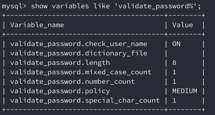$ show variables like 'validate_password%';