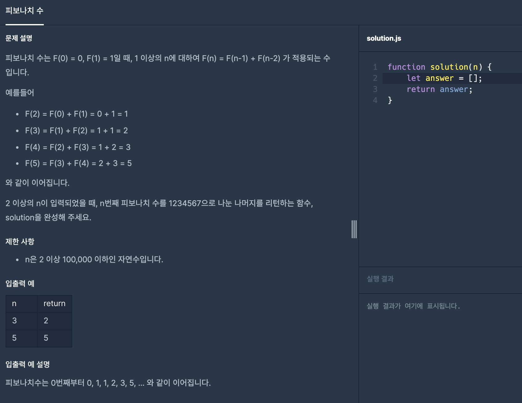 수업중에 피보나치 수열의 예제로 나왔던 문제. 꾸역꾸역 일단 풀음. 손에 익히는게 먼저야.