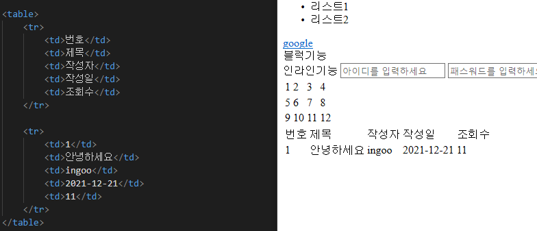 - 표를 만드는 것. 게시판을 만들때 자주 사용하는 엘리먼트.