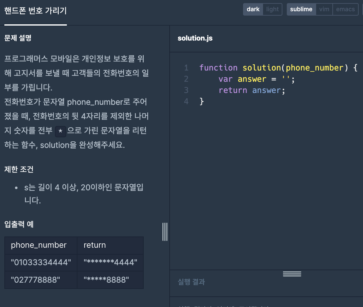 해당 문제 주소 : https://programmers.co.kr/learn/courses/30/lessons/12948