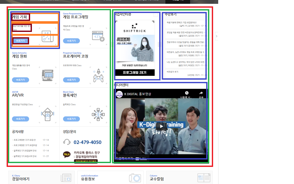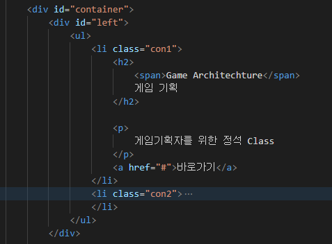 table을 사용할 수도 있겠지만 보다 깔끔하고 수정이 용이한 ul, li기능을 사용한다.