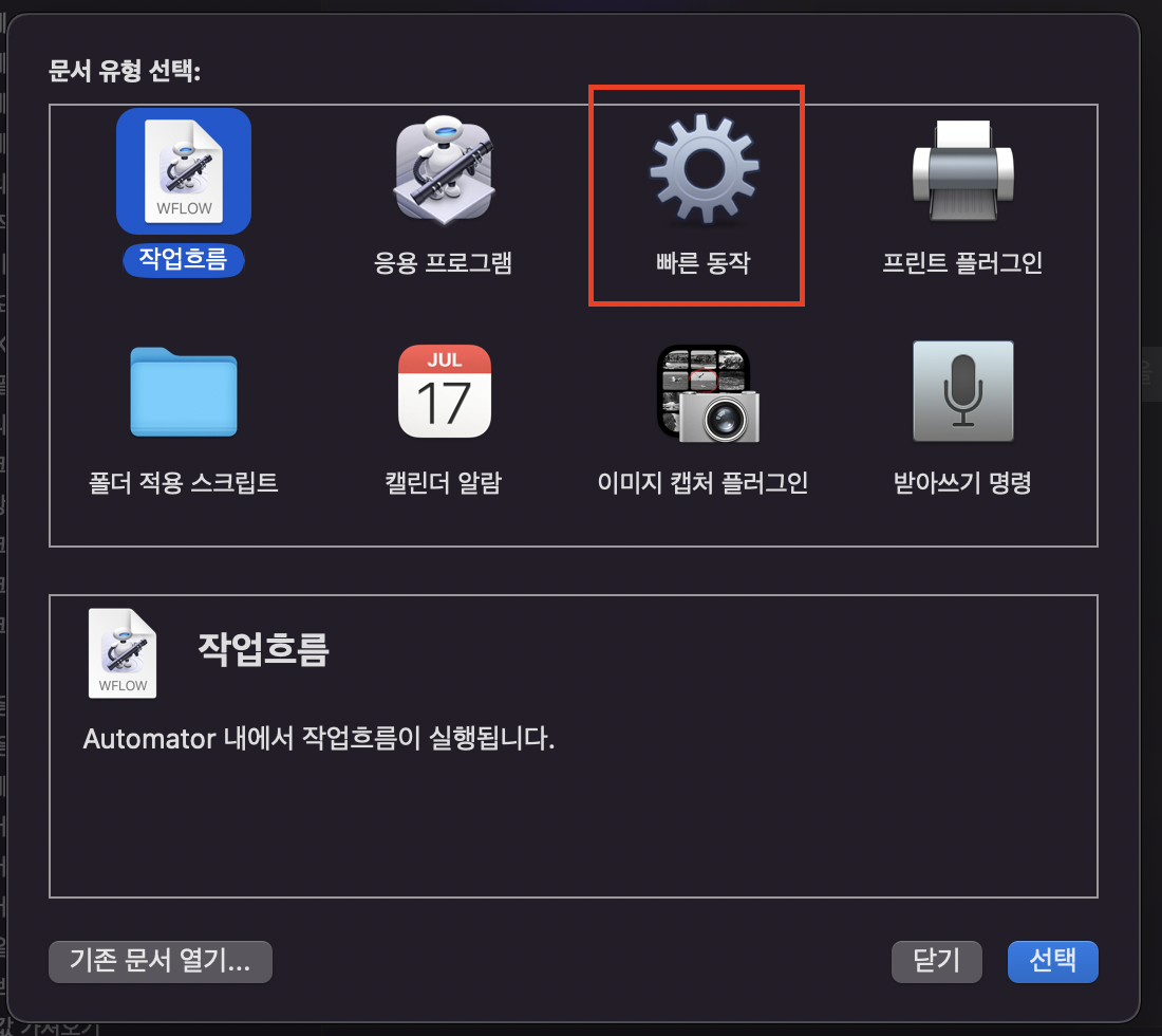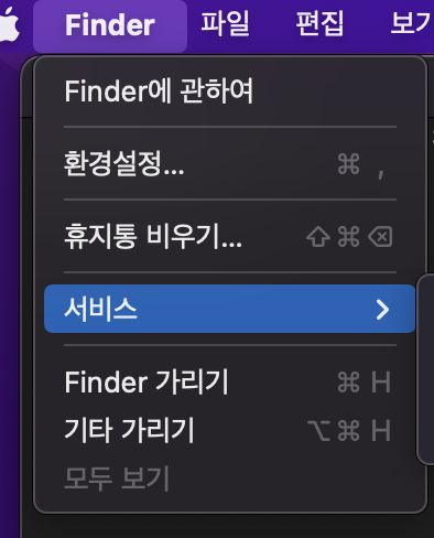 finder에서 서비스 목록을 클릭만!하고 바탕화면을 클릭!하면 단축키가 실행된다.