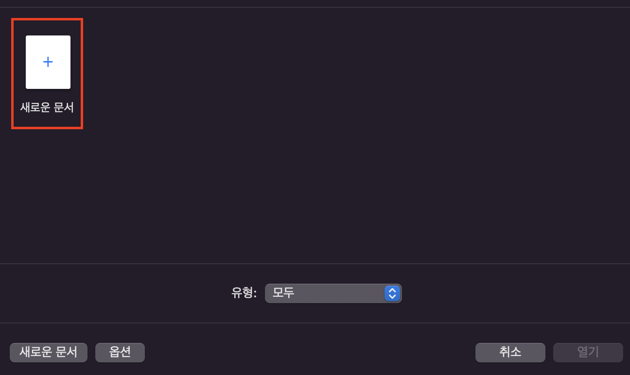 2. 실행한 후 처음 뜨는 화면에서 새로운 문서 선택