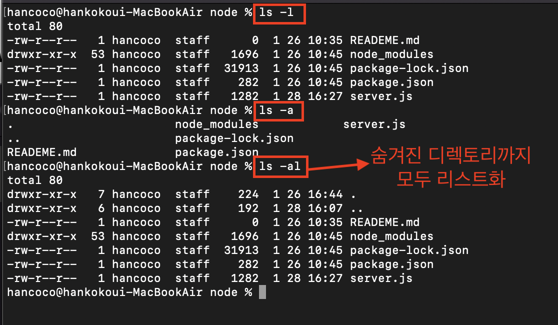 ls : 현재 있는 디렉토리 안의 파일 리스트를 출력해주는