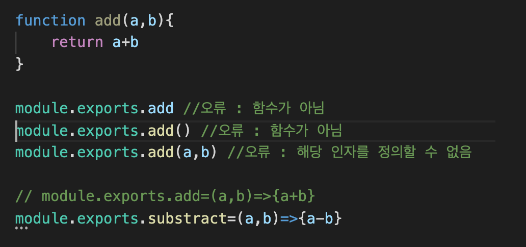 - 단일 객체를 내보낼때는 module.export를, 2개 이상 객체를 내보낼때는 export를 사용해서 내보낸다.