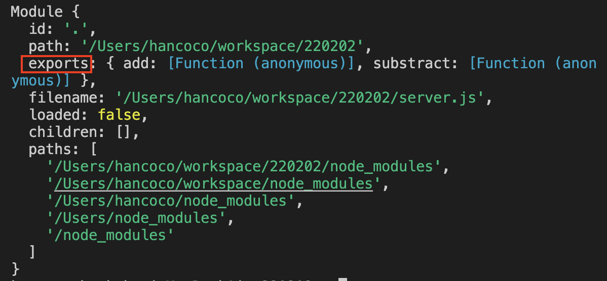 module을 보면 exports가 비어있는것을 확인할 수 있다.