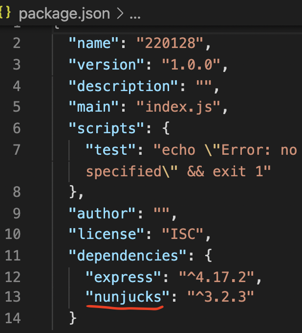2. nunjucks 설치