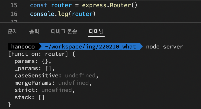 다음을 보면 라우터가 객체인걸 알 수 있다. 이 특성을 이용해서 안에 넘어갈 수 있다.