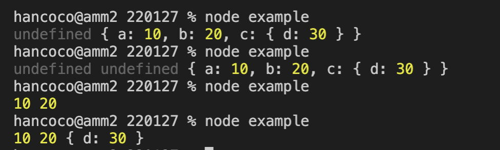 쨔쟌. 이렇게하면 출력결과가 귀신같이 10, 20, {d:30}이 나온다.