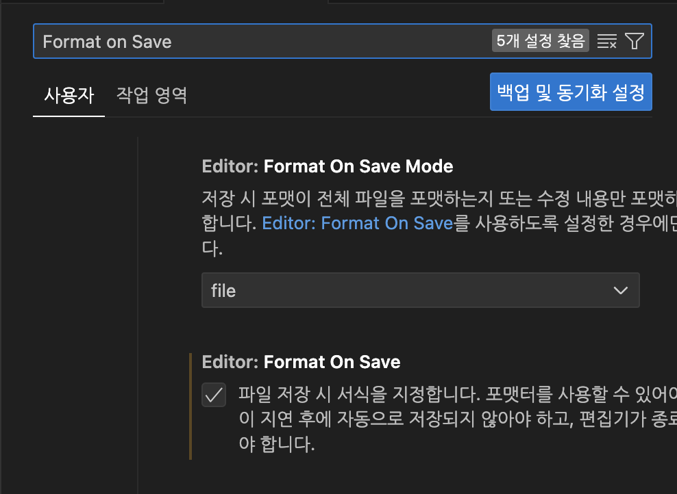위와 같이 설정해주면 저장할때마다 코드가 자동정렬된다.