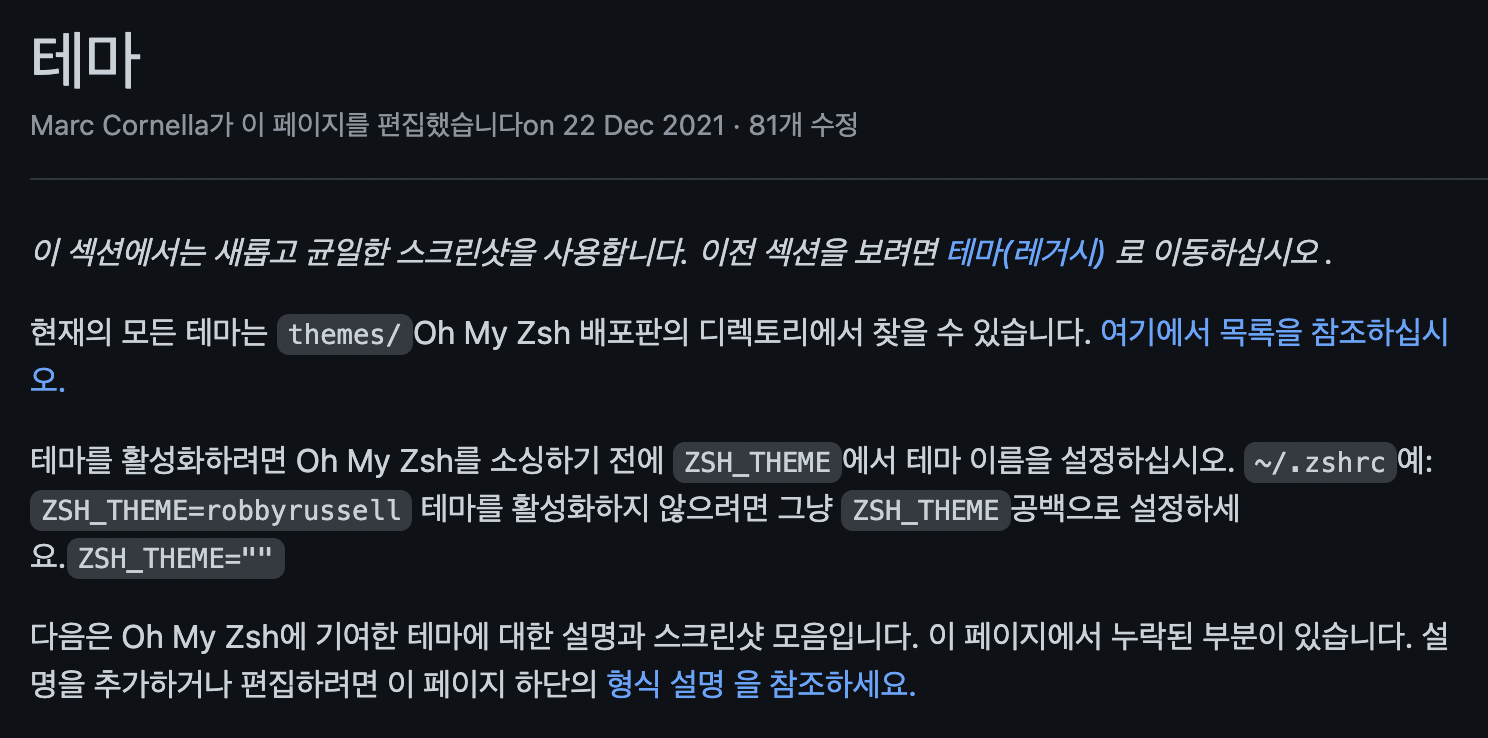 4. oh my zsh에서 테마 설치하기