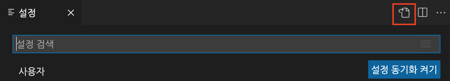 이 파일을 다운 받아서 vsc의 설정을 다시 켜서, 빨간 버튼을 누르면 json 파일이 열리고 편집이 가능하게 된다.