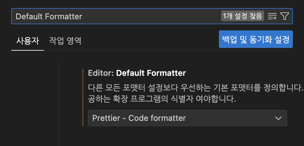 Prettier를 설치했다면, vscode에서 설정이 가능하다.