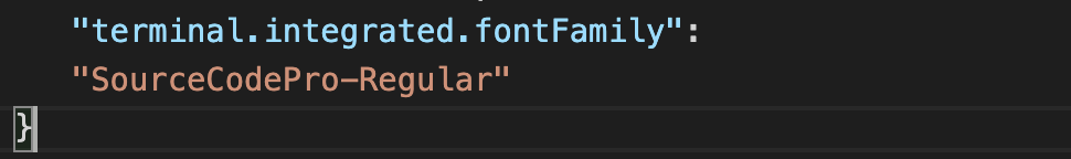 "terminal.integrated.fontFamily": "SourceCodePro-Regular"